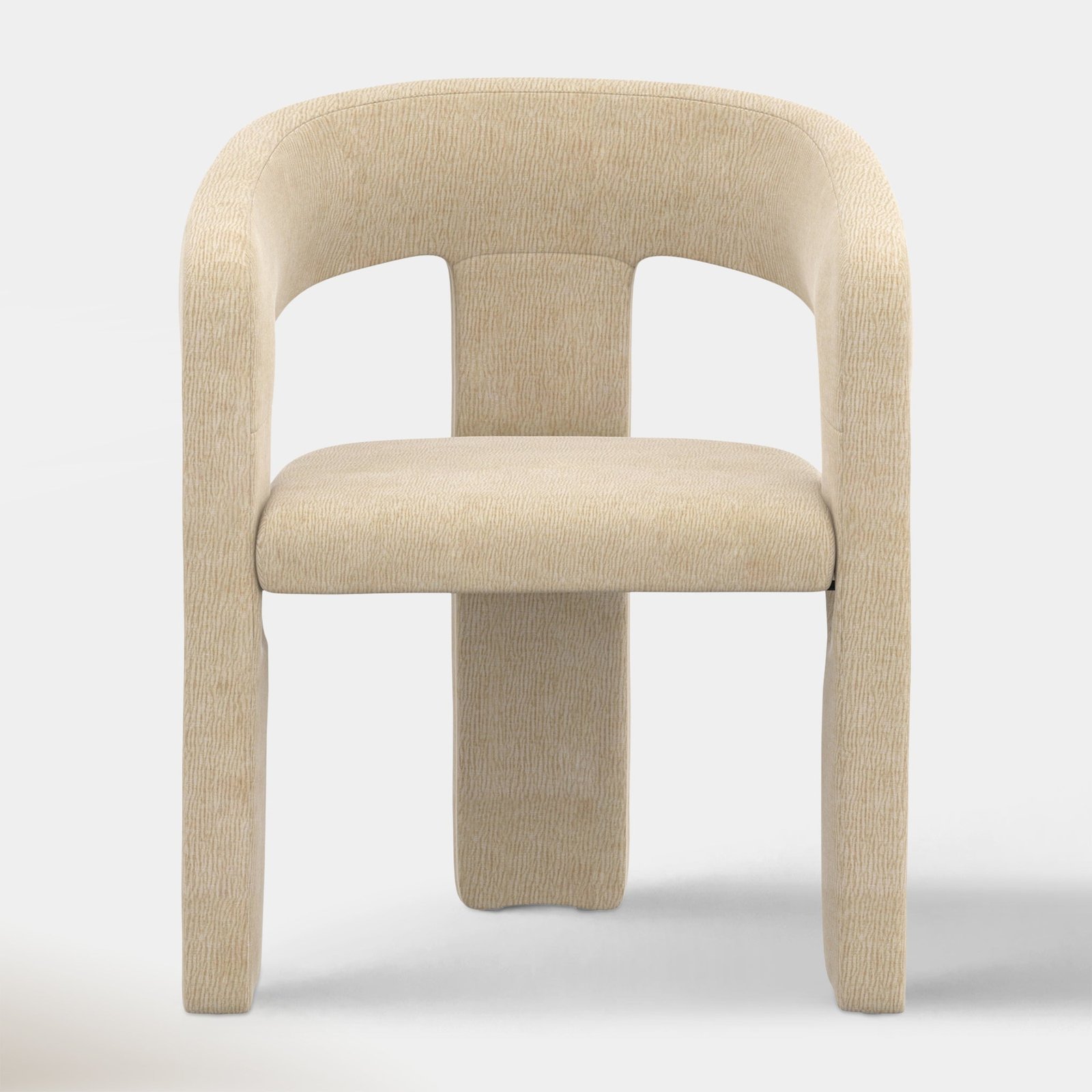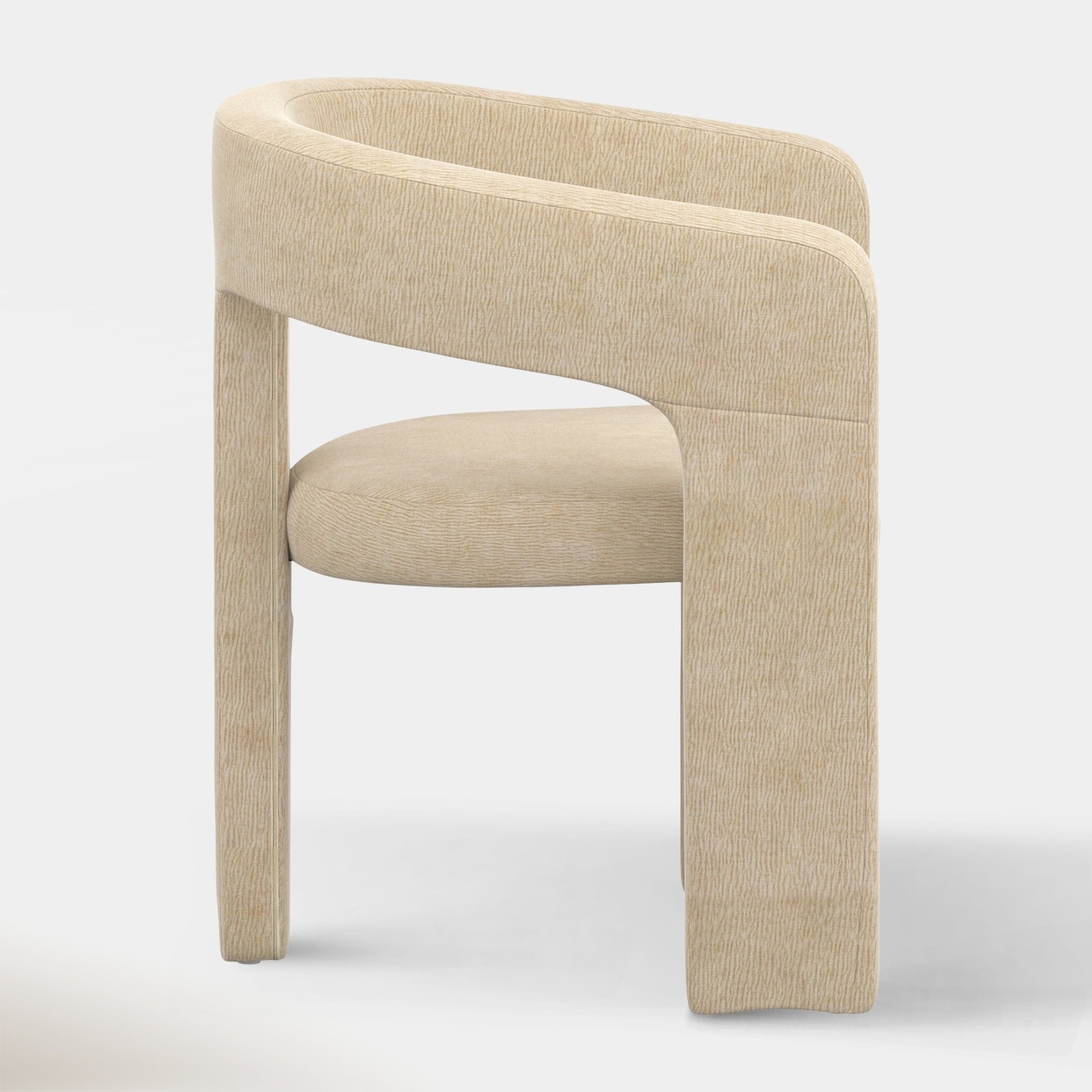 Enjoy your dining experience with the Marcel Dining Chair in Beige. These modern, bucket-style chairs feature plush chenille fabric and medium-soft foam cushions for unmatched comfort. The fully upholstered, three-leg design offers a chic and sturdy addition to any dining space.